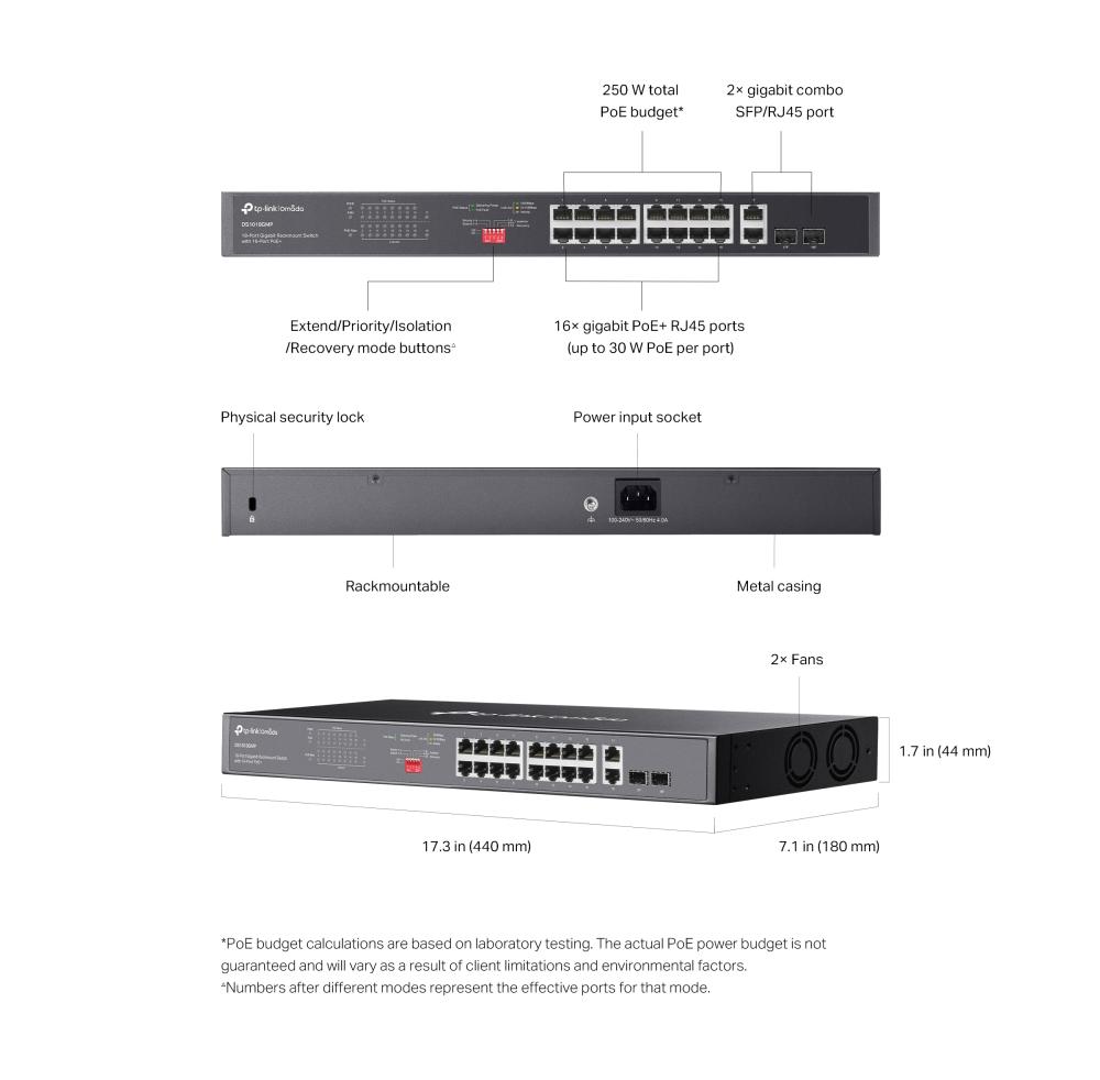 18-портов гигабитен неуправляем комутатор TP-Link Omada DS1018GMP с 16-портов PoE+