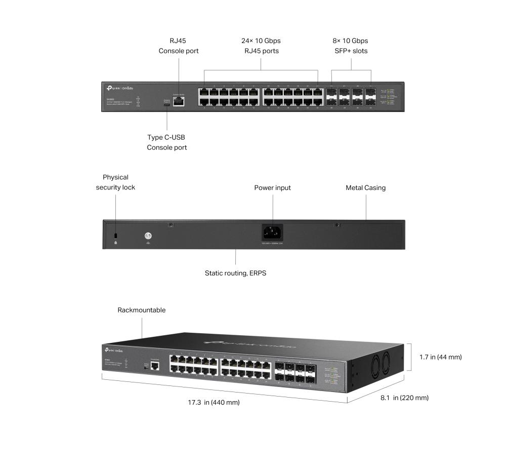 24-портов 10GBASE-T L2+ управляем комутатор с 8 10GE SFP+ слота TP-Link Omada SX3832
