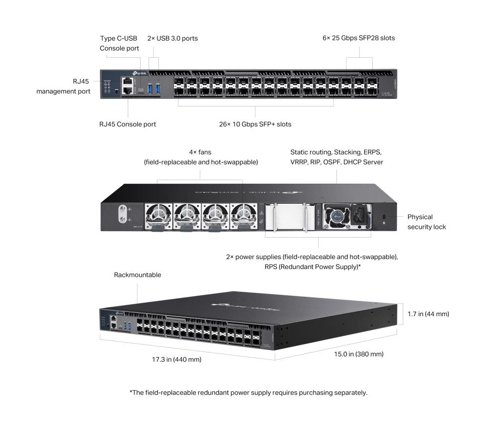 26-портов 10G модулен L3 управляван агрегационен комутатор с 6 25G слота TP-Link Omada SX6632YF