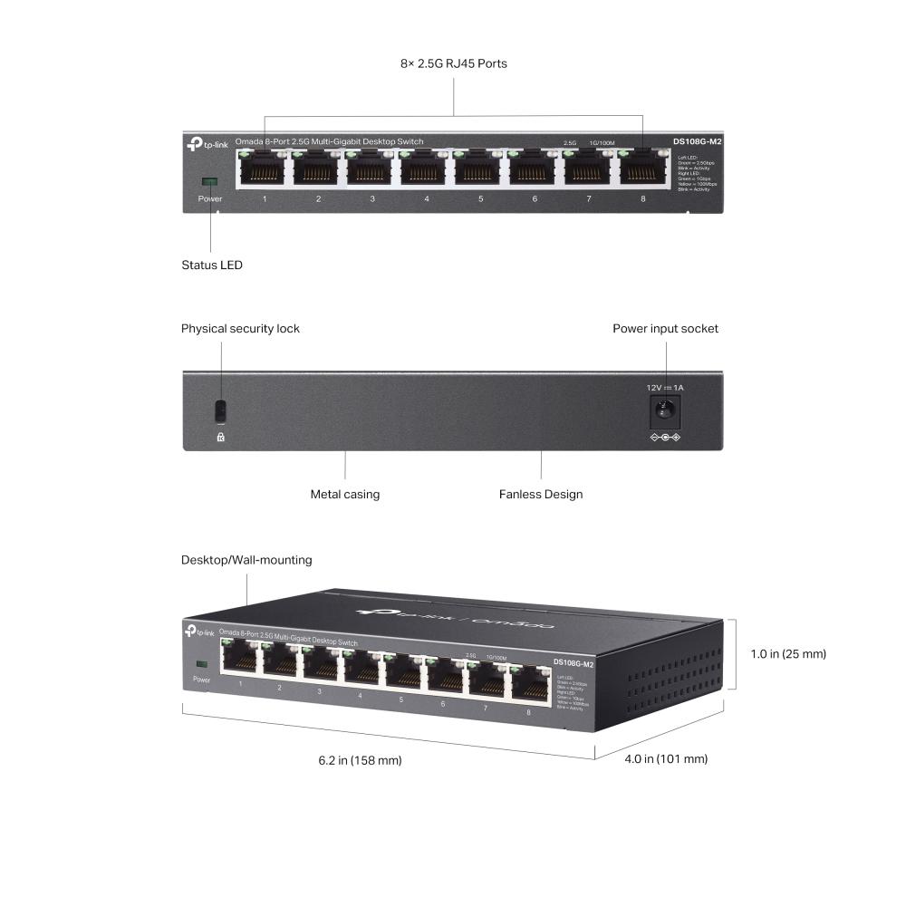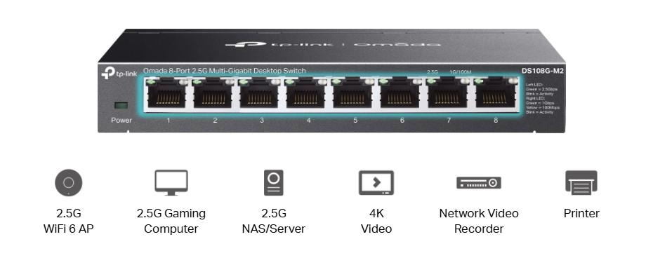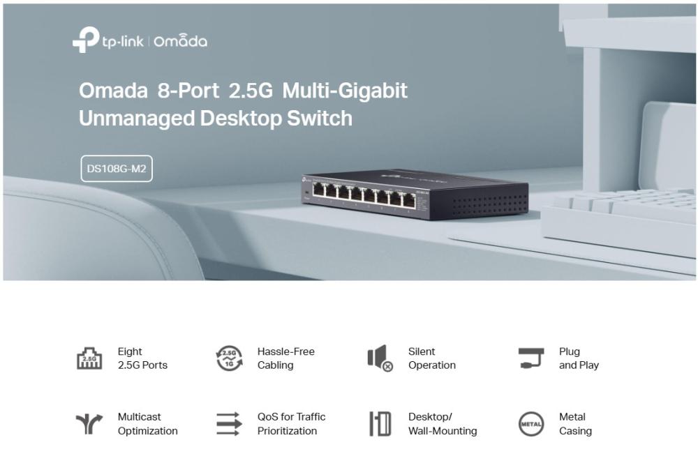 8-портов 2.5G мулти-гигабитов неуправляем настолен комутатор TP-Link Omada DS108G-M2