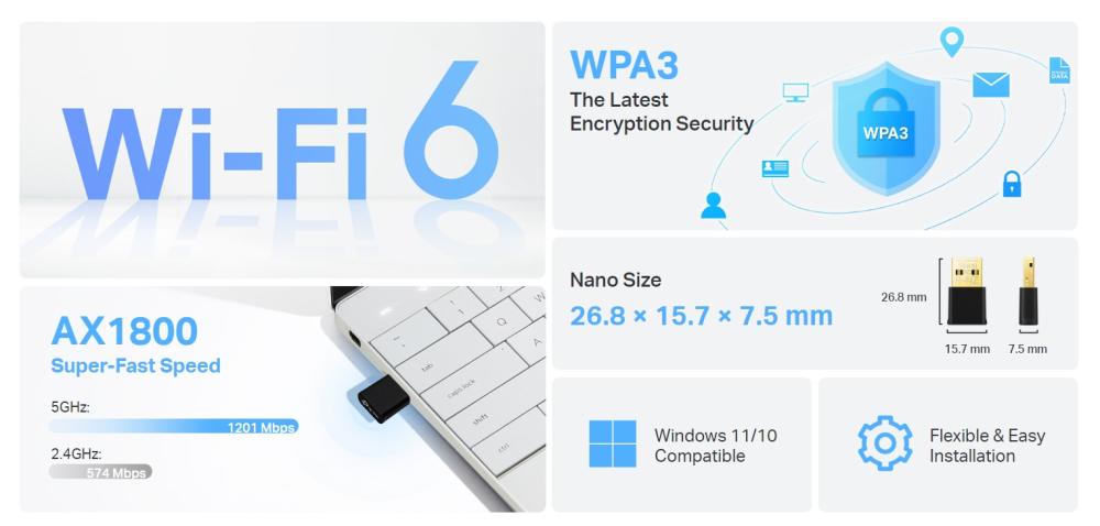 Безжичен USB 2-лентов адаптер TP-Link Archer TX20U Nano AX1800
