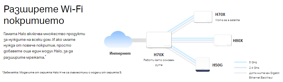 Безжична Wi-Fi 6 Mesh система Mercusys Halo H70X(2-pack) AX1800