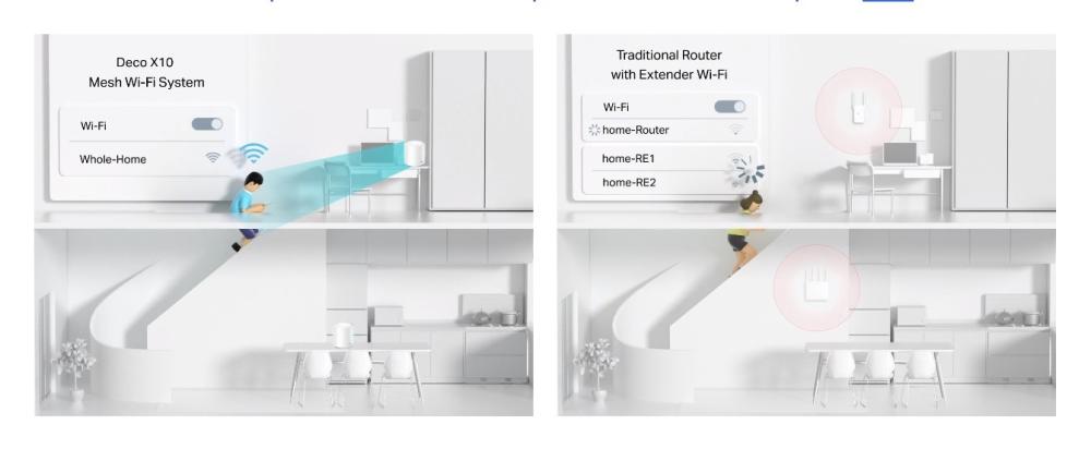 Deco X10 е съвместим с всеки друг модел Deco за образуване на Mesh мрежа. Разширете покритието на Mesh WiFi по всяко време, като добавите още Decos.