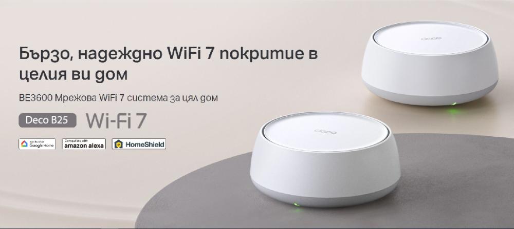 Безжична Wi-fi 7 Mesh система TP-Link Deco BE25(2-pack) BE3600