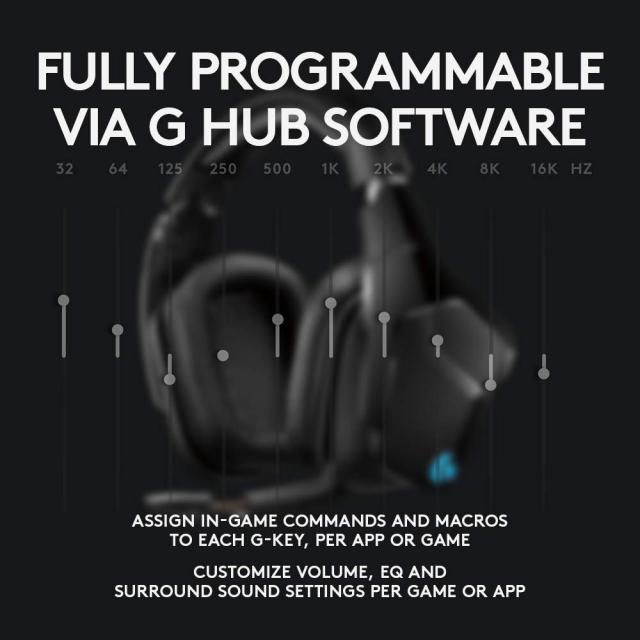 Геймърски слушалки Logitech, G935 7.1 Wireless 7.1 Surround Lightsync, Безжични, Черни