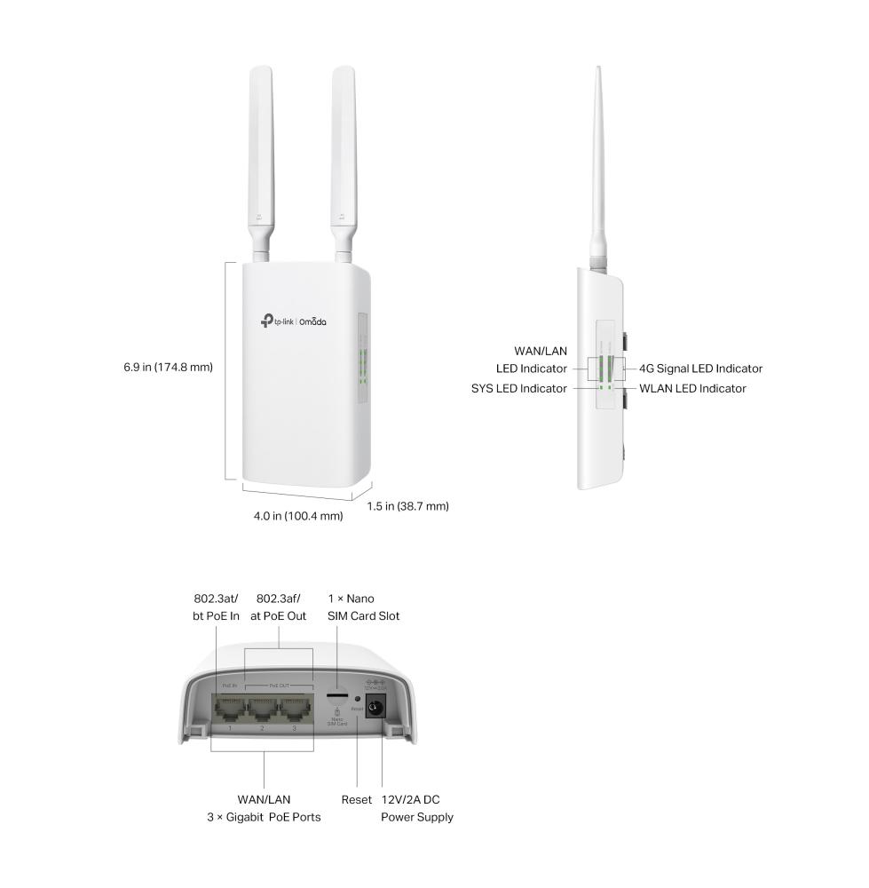 Гигабитен външен/вътрешен комутатор TP-Link Omada ER703WP-4G-Outdoor 4G+ Cat6 AX3000 Wi-Fi 6