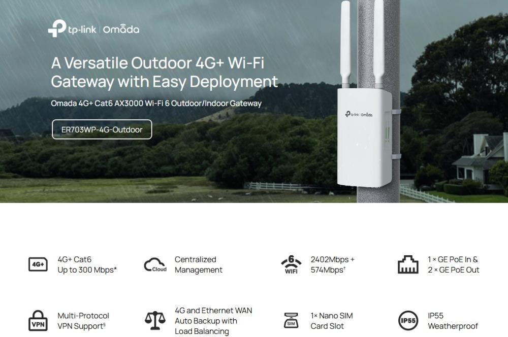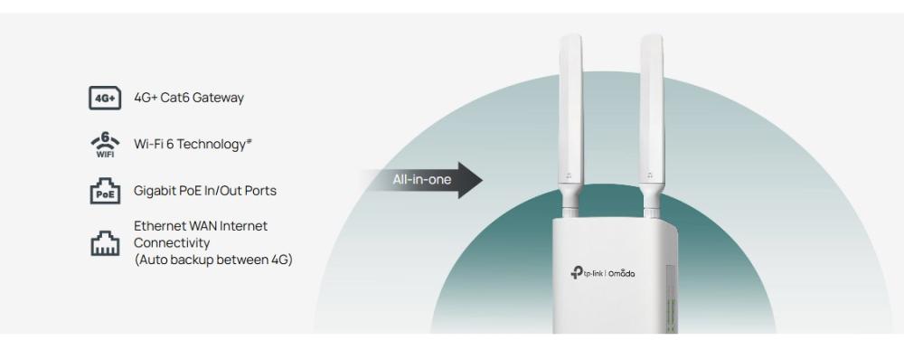 Гигабитен външен/вътрешен TP-Link Omada ER703WP-4G-Outdoor Gateway 4G+ Cat6 AX3000 Wi-Fi 6