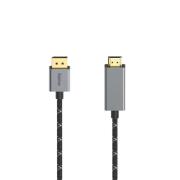 Кабел HAMA, DisplayPort мъжко - HDMI мъжко, Ultra-HD, 4K@60 Hz, 1.5м, Алуминий, Позлатени конектори, Черен